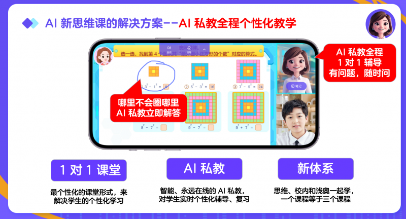 在名师化方面,伴鱼智学打造的 AI “可可老师”,融合了顶级教研团队的教学理念与经验。通过对名师教学模式的复刻与优化,“可可老师” 具备了与名师相当的教学能力,能够为学生提供专业、系统的知识讲解,让普通学生也能享受到优质的名师教学资源。