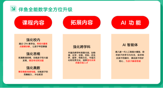 “外部环境在加速变化,教育技术也在不断迭代,我们必须跟上甚至超越这个速度”,黄河强调。从早期的在线绘本,到 “双减” 后的阅读体系升级,再到如今 AI 赋能的全能数学课程,伴鱼始终以 “进化” 应对变化,这正是其在教育市场中持续产出爆品的核心原因。